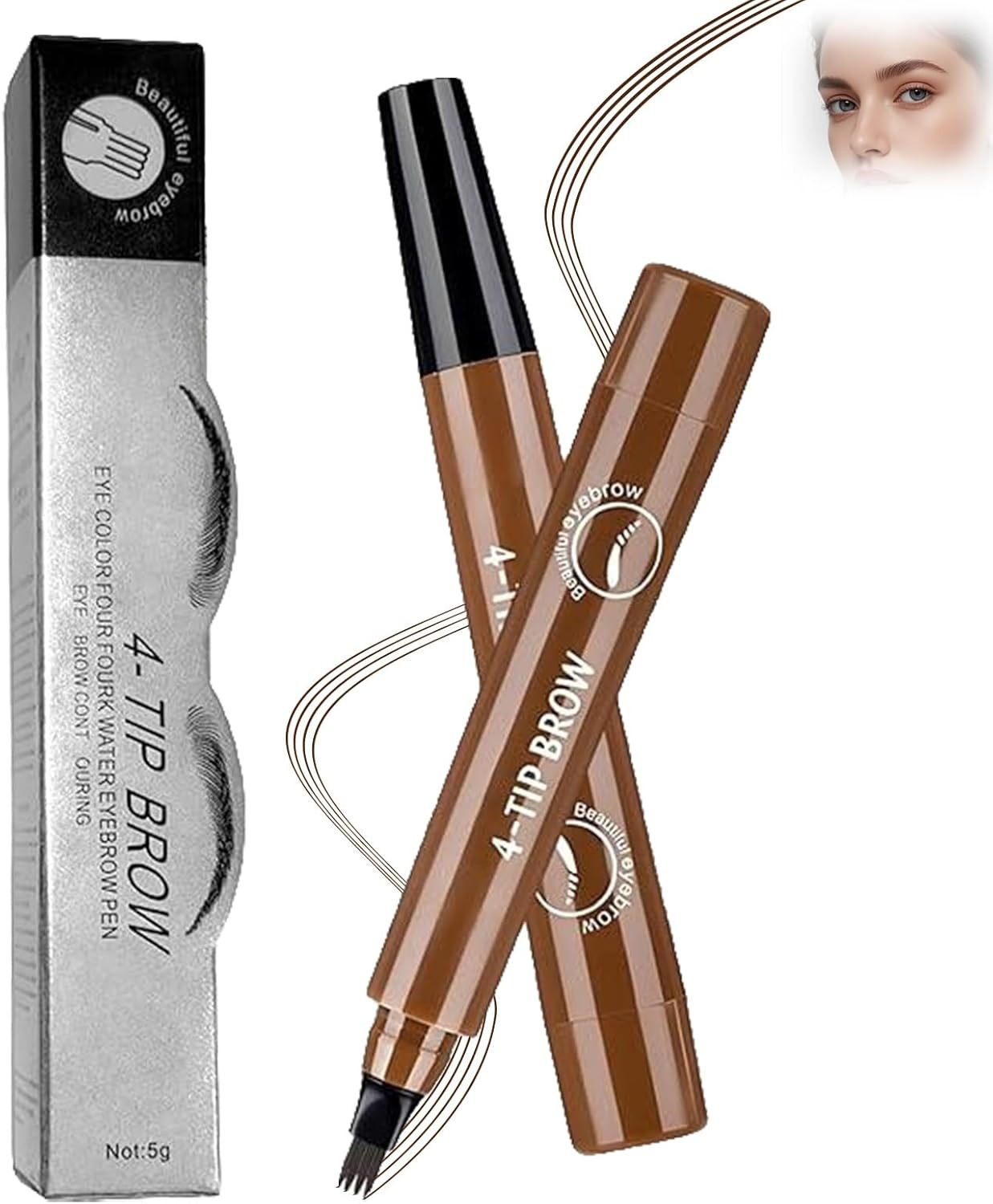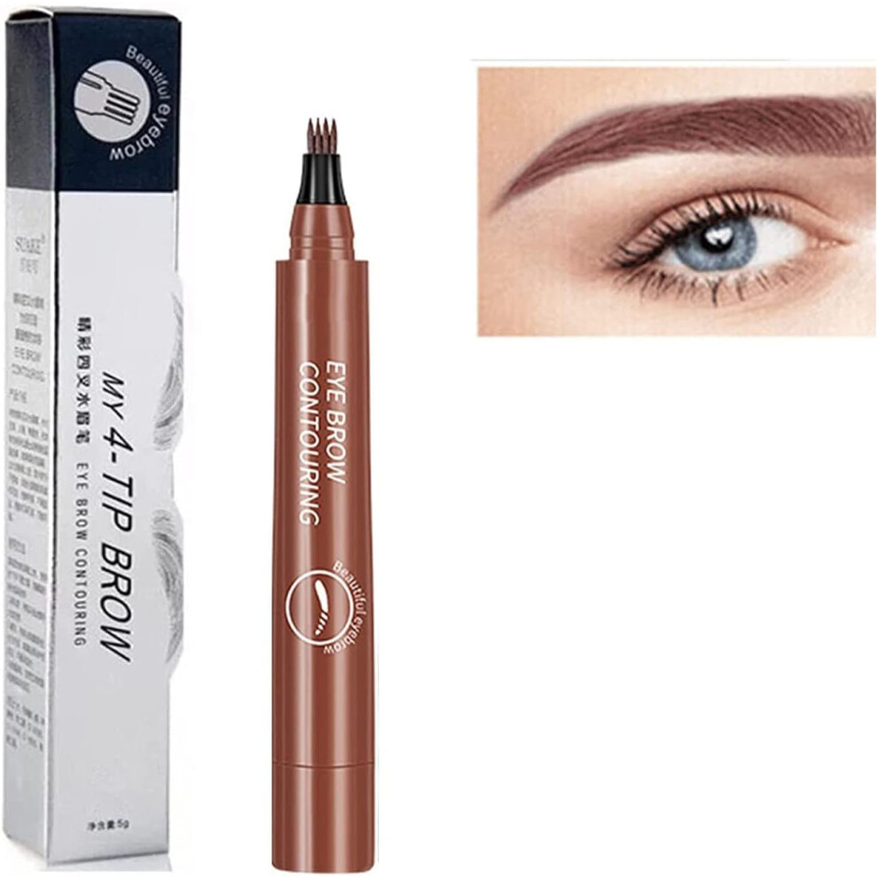 (Dark Brown) 4 Tipped Precise Brow Pen, 4 Point Eyebrow Pencil Waterproof Liquid Eyebrow Pen Makeup With a Micro-Fork Tip Applicator