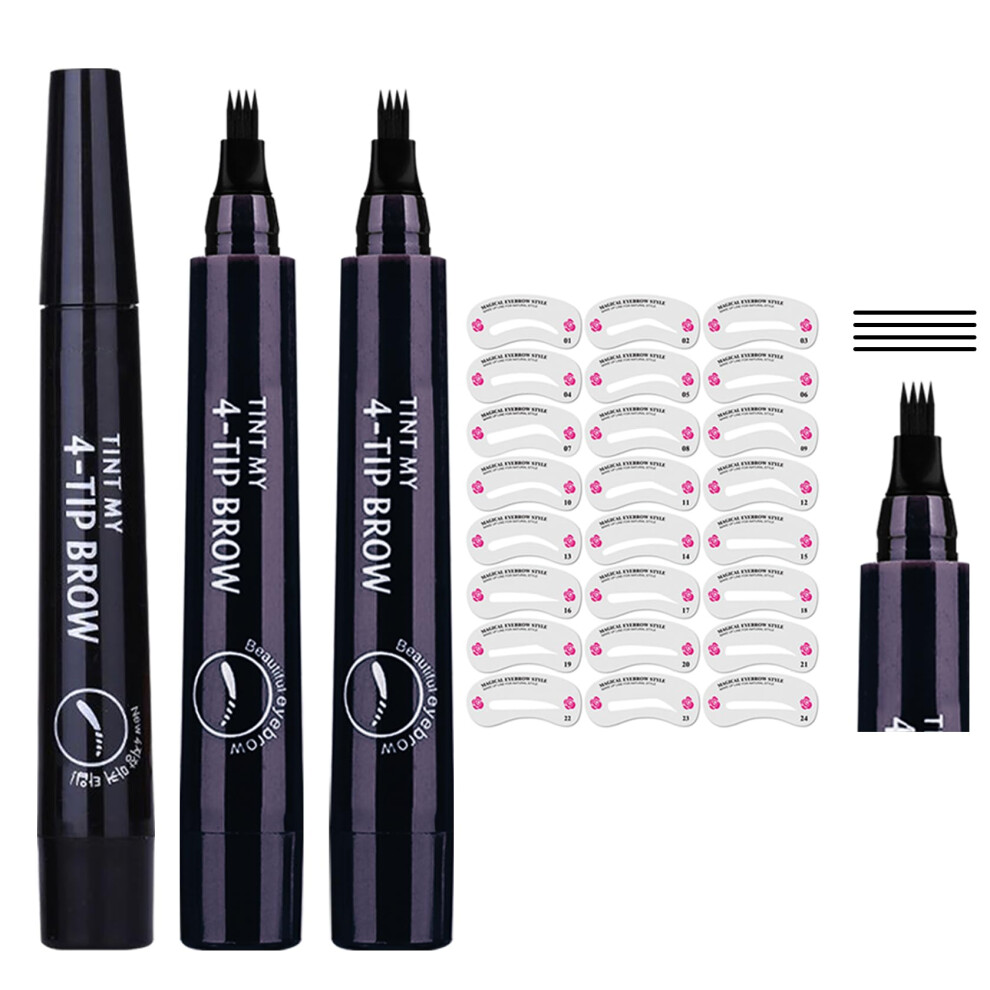 3PCS Microblading Eyebrow Pencils with 24 Eyebrow Stencils Waterproof Liquid Eyebrow Pen Magical Precis Eyebrow Contouring Pen 4 Tip Micro Brow Pencil