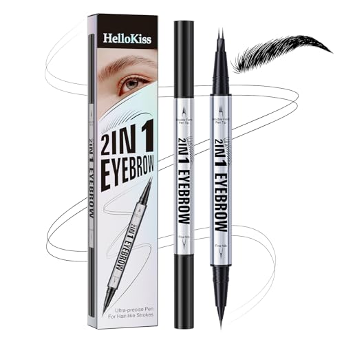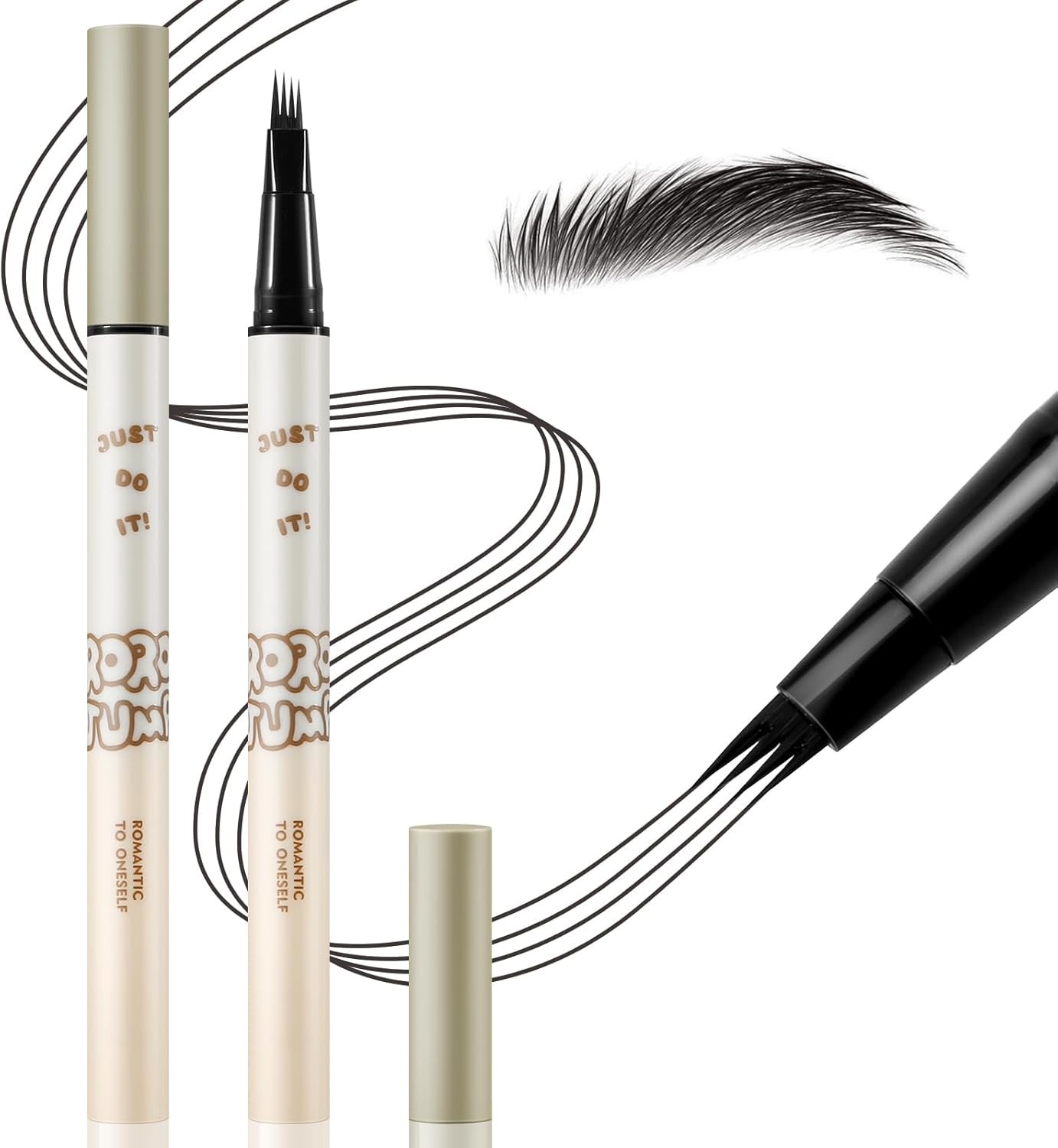2-in-1 Eyebrow Pencil with 2 Micro-Fork Tip, Waterproof Eyebrow Pen and Smudgeproof Brow Pen,with Eyebrow brush,Last All Day, Shaping, Defined (Black)