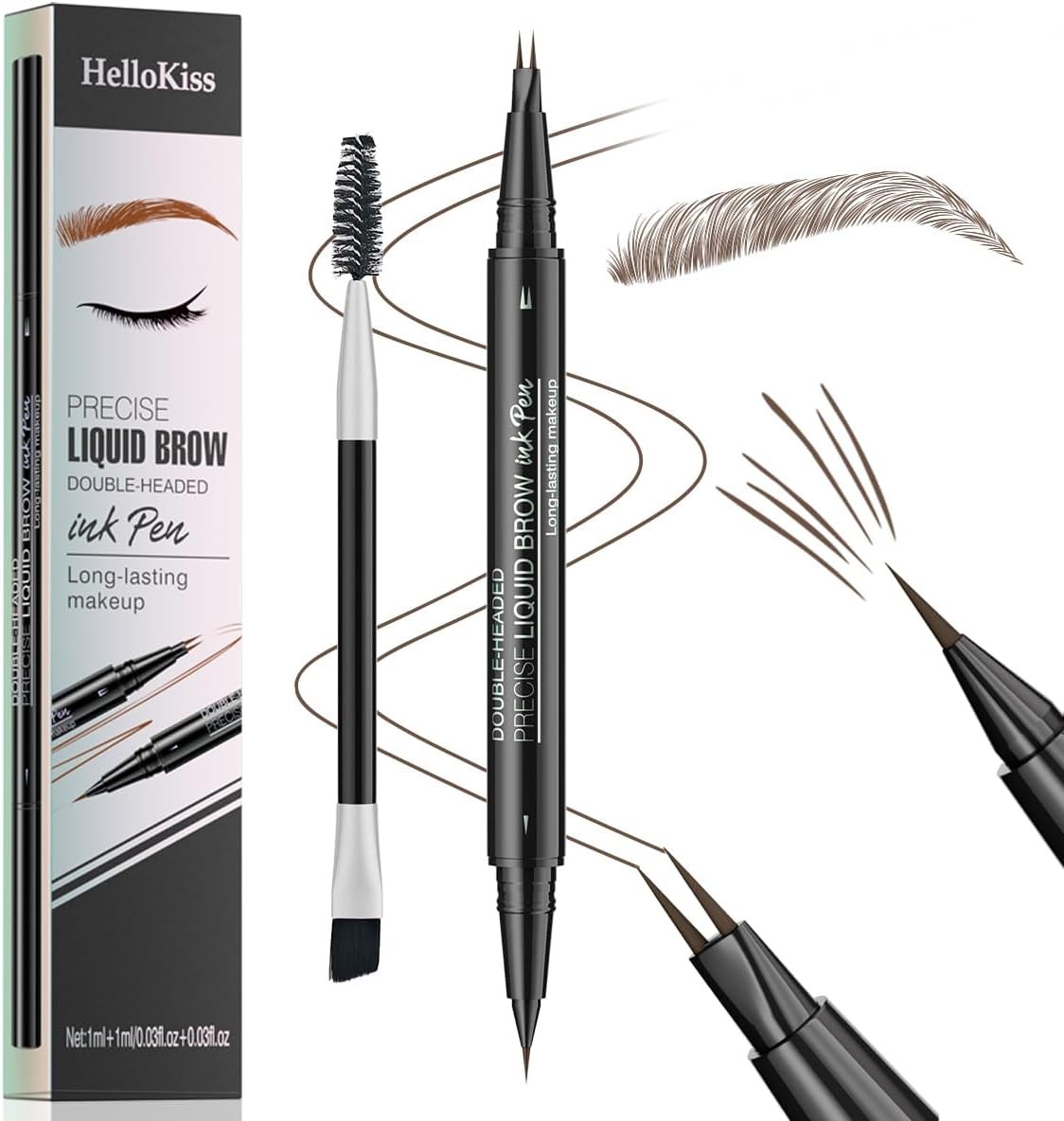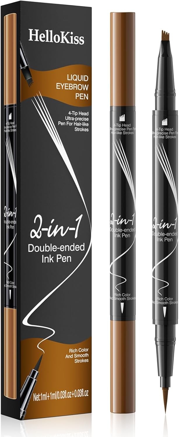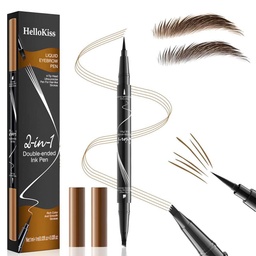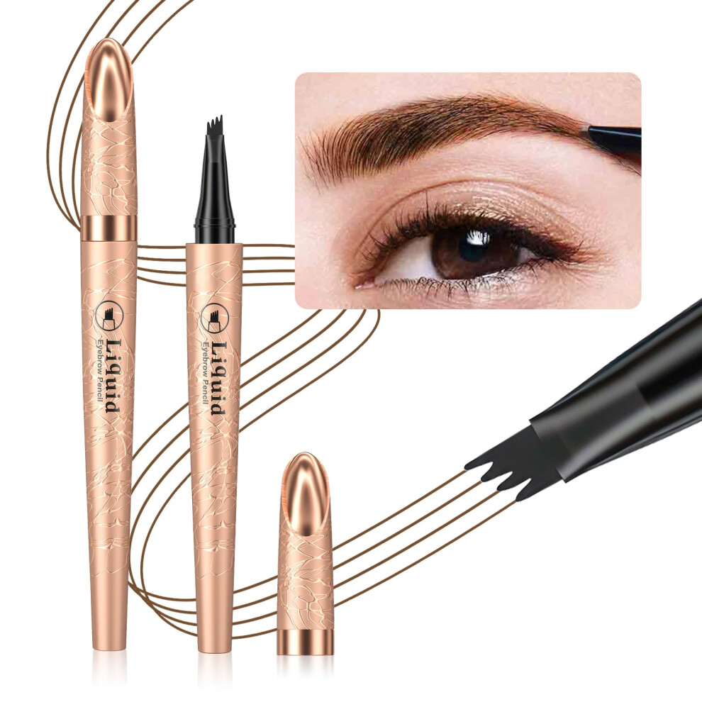 Dual-ended Waterproof Eyebrow Pencil, Ultra Fine 2-in-1 Pencil and Four Micro-Fork Tip Liquid Brow Pencil, Create Natural Hair-Like Brows, Last All