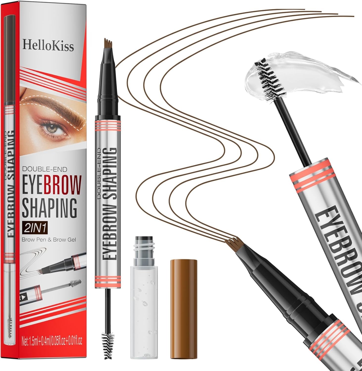 Eyebrow Pencil with Eyebrow Gel, 2 in 1 Brow Pen and Brow Gel with 4 Micro-Fork