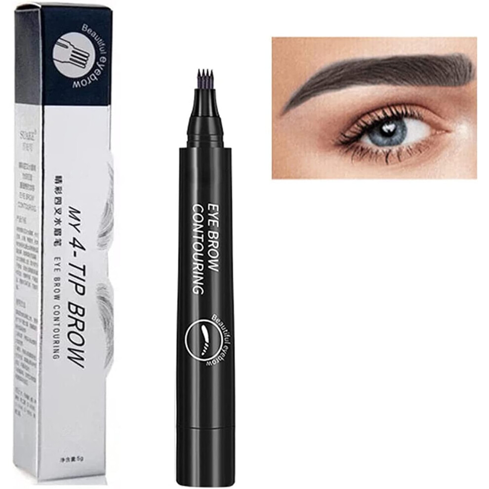 (Gray Brown) 4 Tipped Precise Brow Pen, 4 Point Eyebrow Pencil Waterproof Liquid Eyebrow Pen Makeup With a Micro-Fork Tip Applicator