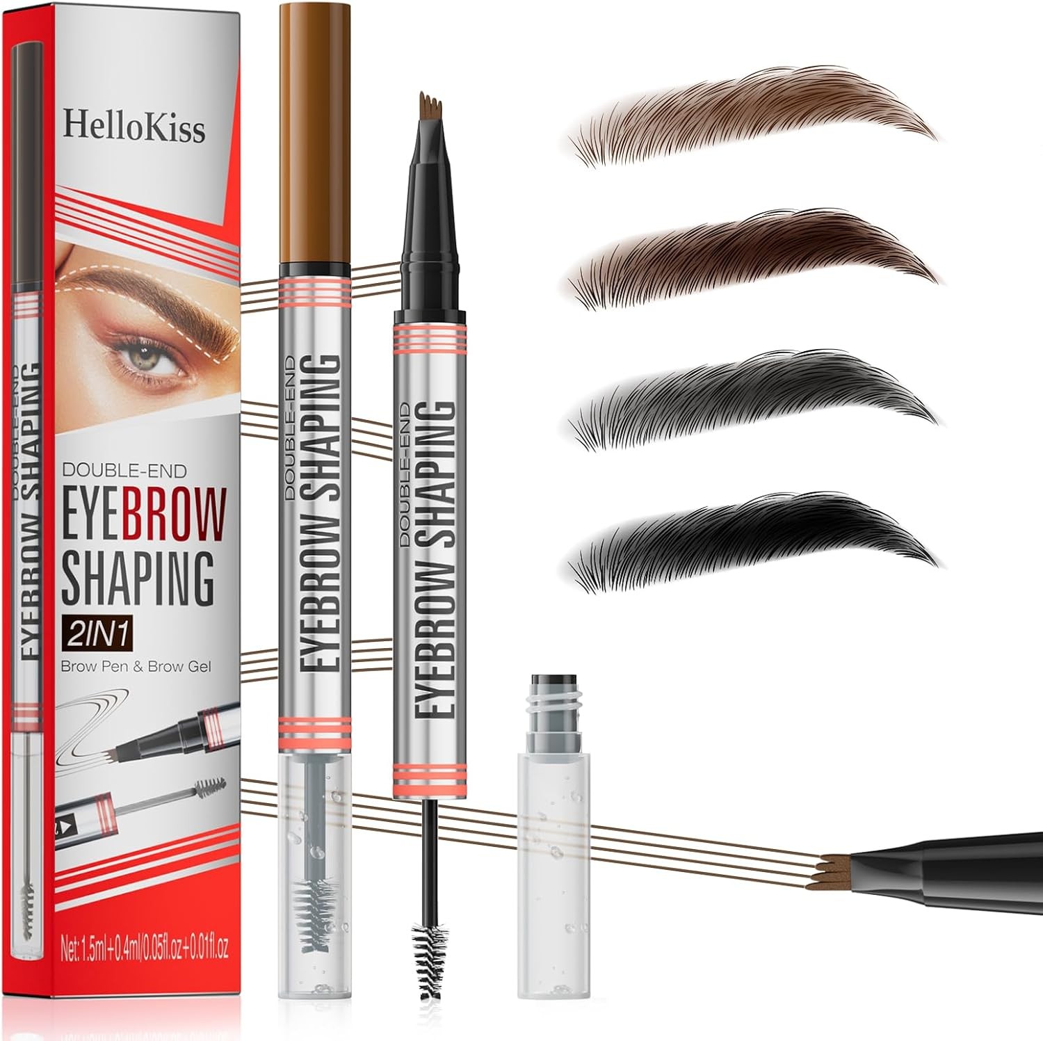 Eyebrow Pencil with Gel, 2 in 1 Brow Pen and Gel with 4 Micro-Fork Tip, Waterpr