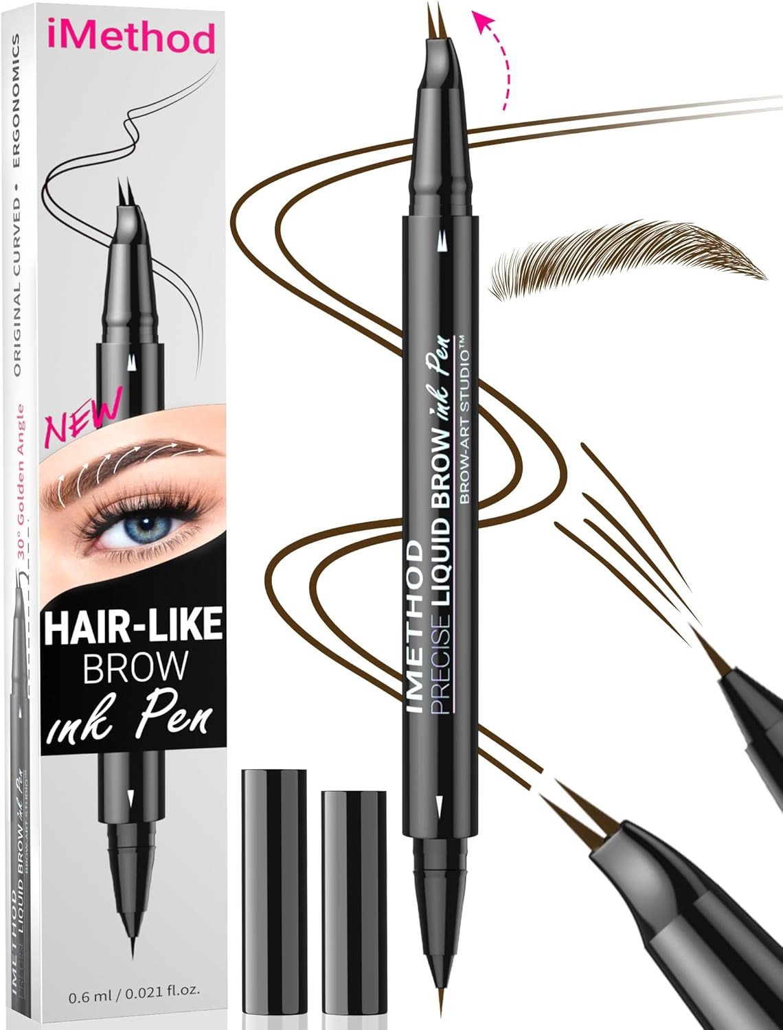 iMethod Curved Eyebrow Pen - Eyebrow Pencil, Brow Pencil 2-in-1 Dual-Ended Microblading Eyebrow Pen with Micro-Fork-Tip and Precise Brush-Tip Create