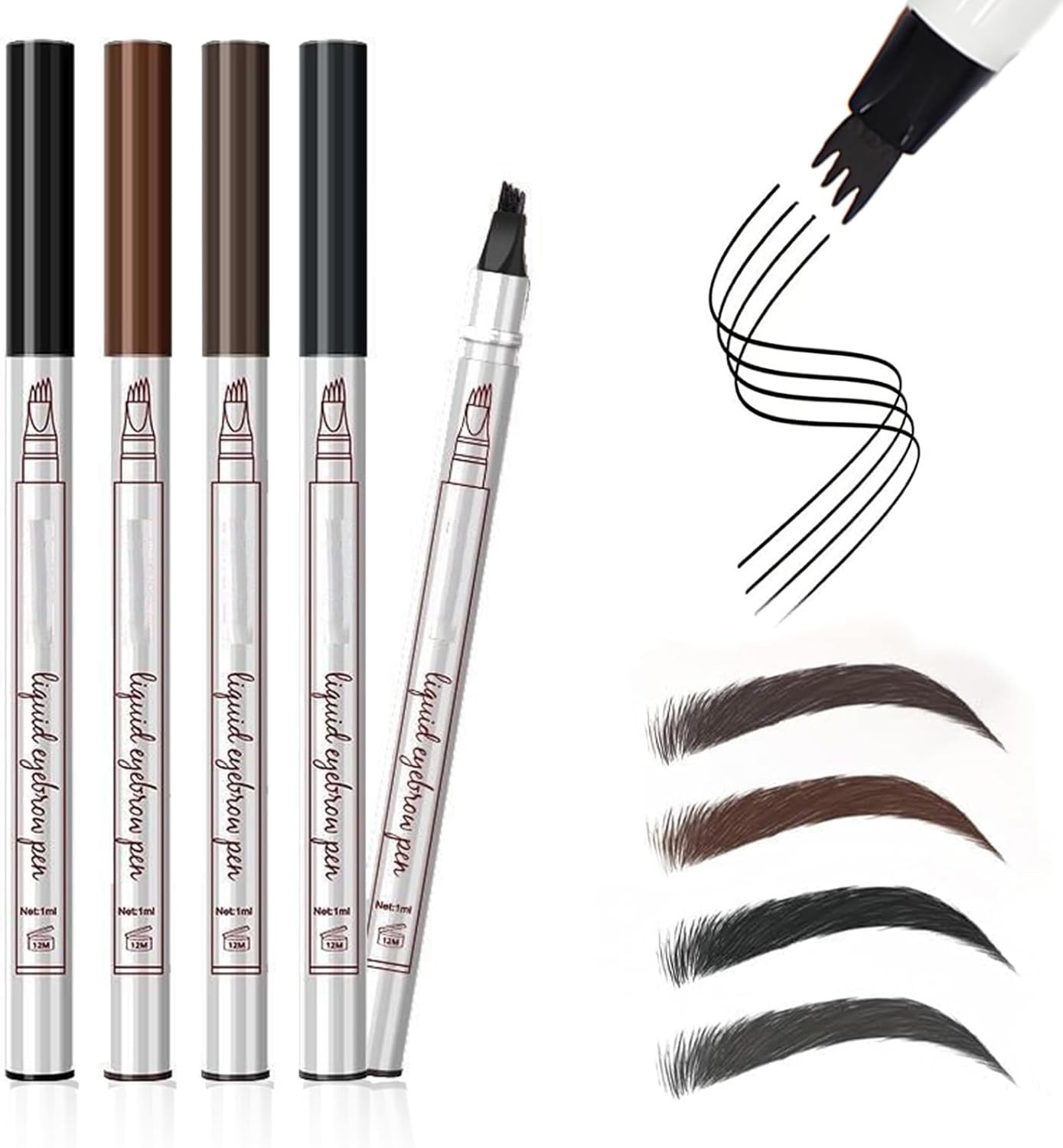 Micro Fork Eyebrow Pen with 4 Tips, Waterproof Smudge-Proof Brow Pencil for Lon