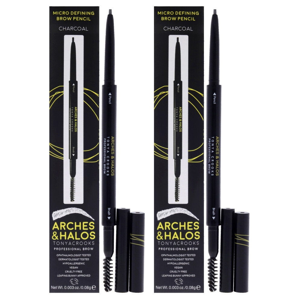 Micro Defining Brow Pencil - Charcoal by Arches and Halos for Women - 0.003 oz Eyebrow Pencil - Pack of 2