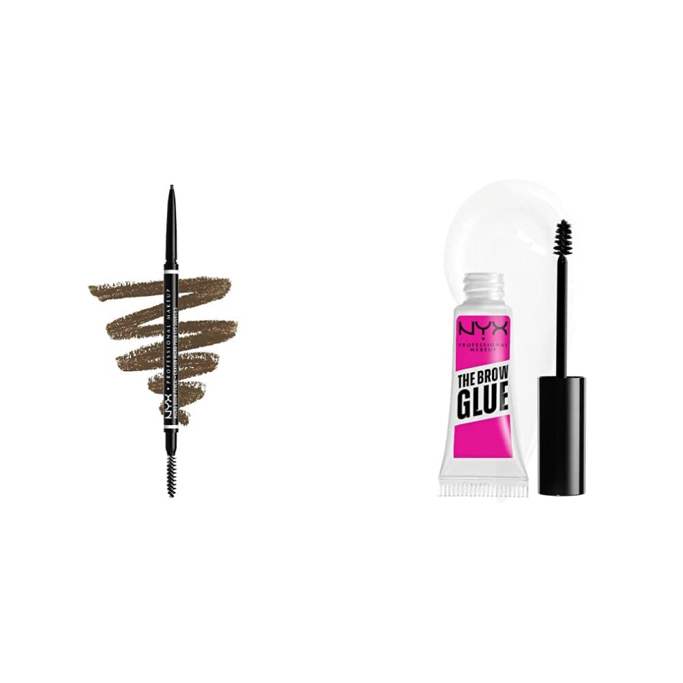 NYX PROFESSIONAL MAKEUP Micro Brow Pencil (Ash Brown) + Brow Glue (Clear) 2-Pack Bundle