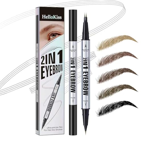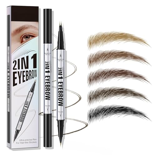 2-in-1 Eyebrow Pencil with 2 Micro-Fork Tip, Waterproof Eyebrow Pen and Smudgeproof Brow Pen,with Eyebrow brush,Last All Day, Shaping, Defined (Dark brown)