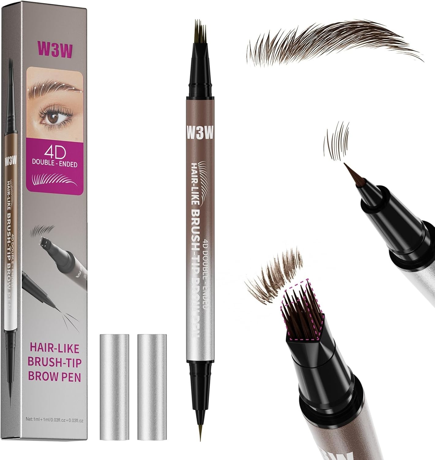 W3W Eyebrow Pencil,Micro Waterproo Brow Pencil for Women,2-in-1 Dual-Ended Eye