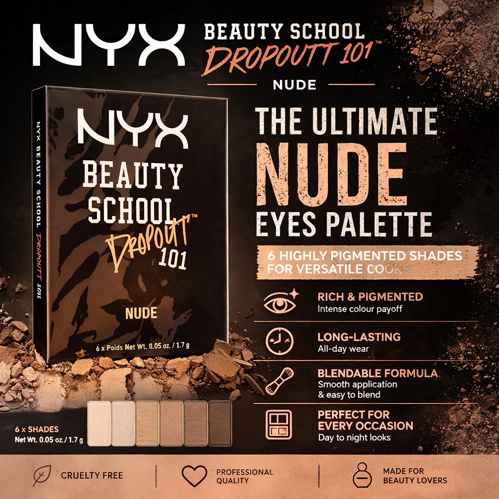 NYX Beauty School Dropout 101 Nude Eyeshadow Palette 6 Shades Pigmented