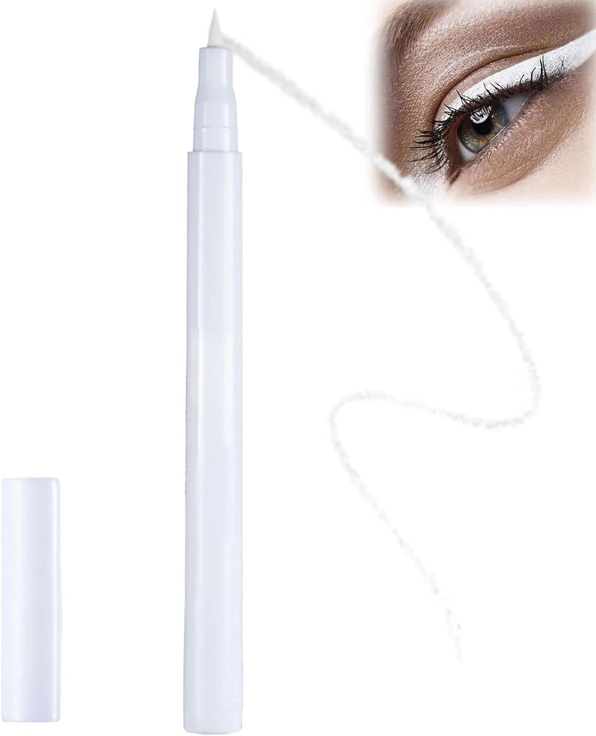 White Waterproof Liquid Eyeliner Pencil, Highly Pigmented & Smudge-Proof, Fine T