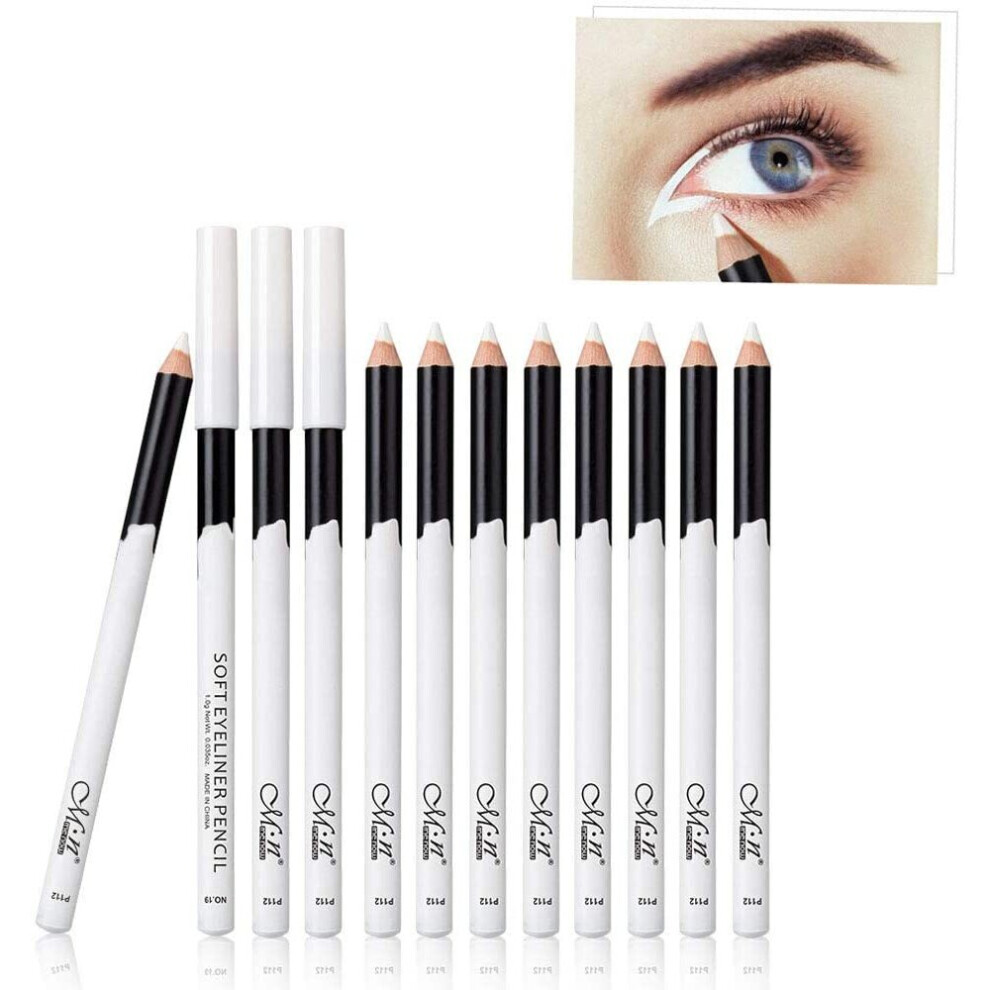 Ownest 12 Packs Professional Highlighter Eye Liner Pen, White Eyeliner Pencil Eye Liner Waterproof Long Lasting Eye Brighten