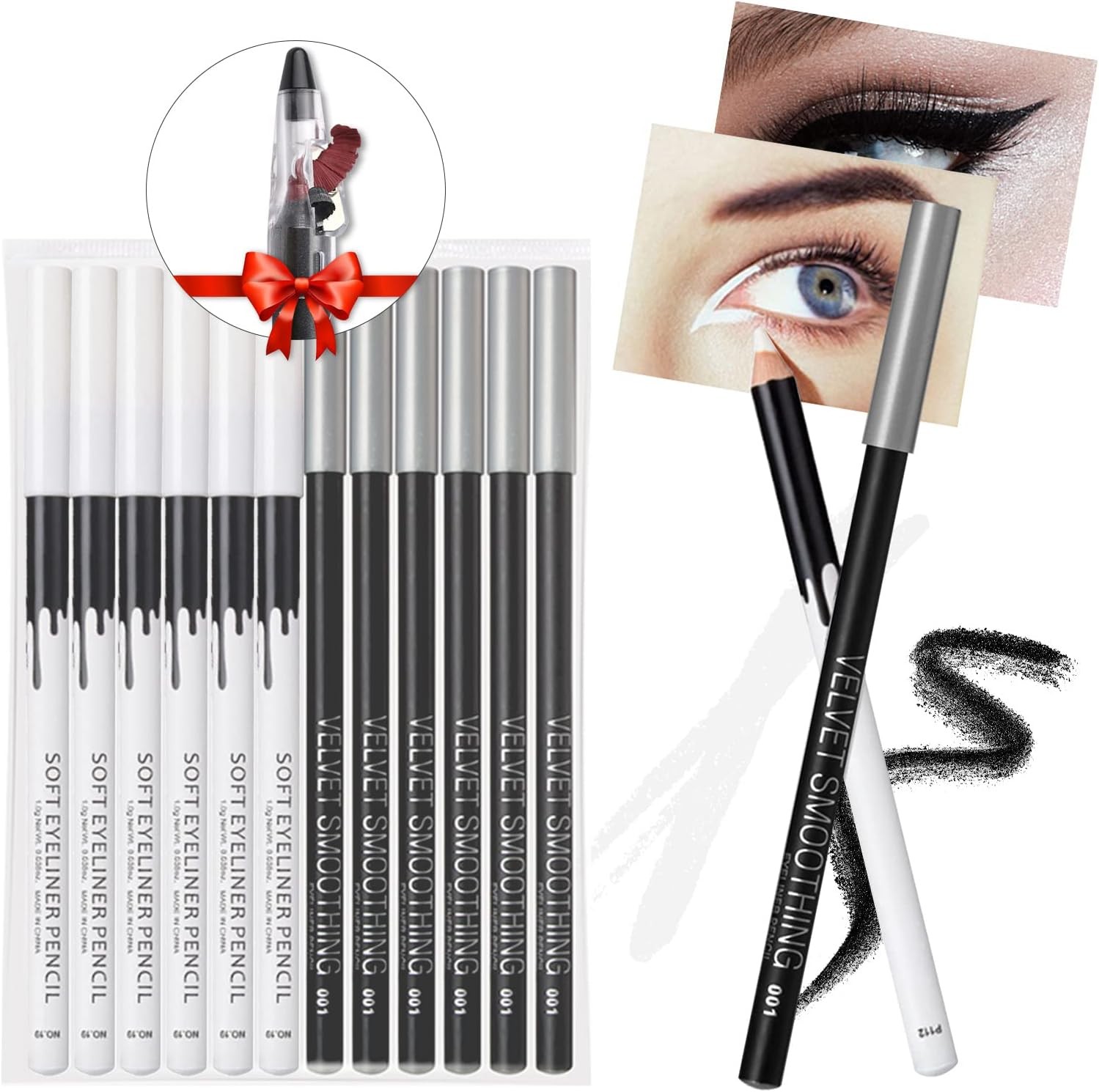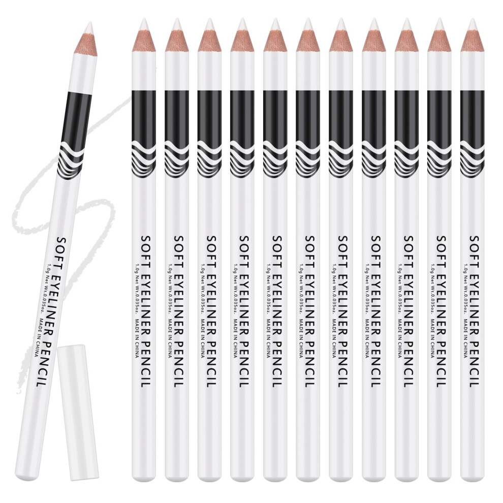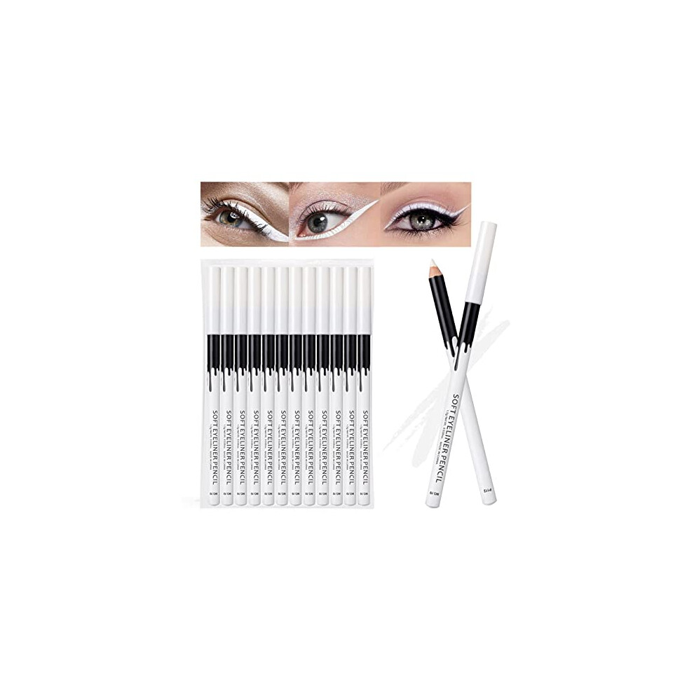 12PCS White Eyeliner Pencil Set, Pigmented Waterproof Long Lasting Smudge Proof for Waterline
