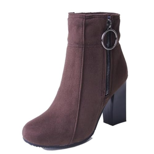 Women's Ankle Boots Suede Leather Side Zip O-Ring Detail Block Heels Round Toe Comfortable Non Slip Durable for Daily Wear Party Street Fashion,Brown,6.5 UK