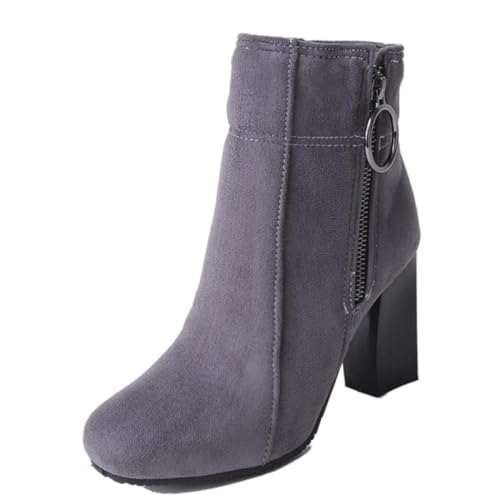 Women's Ankle Boots Suede Leather Side Zip O-Ring Detail Block Heels Round Toe Comfortable Non Slip Durable for Daily Wear Party Street Fashion,Grey,7.5 UK