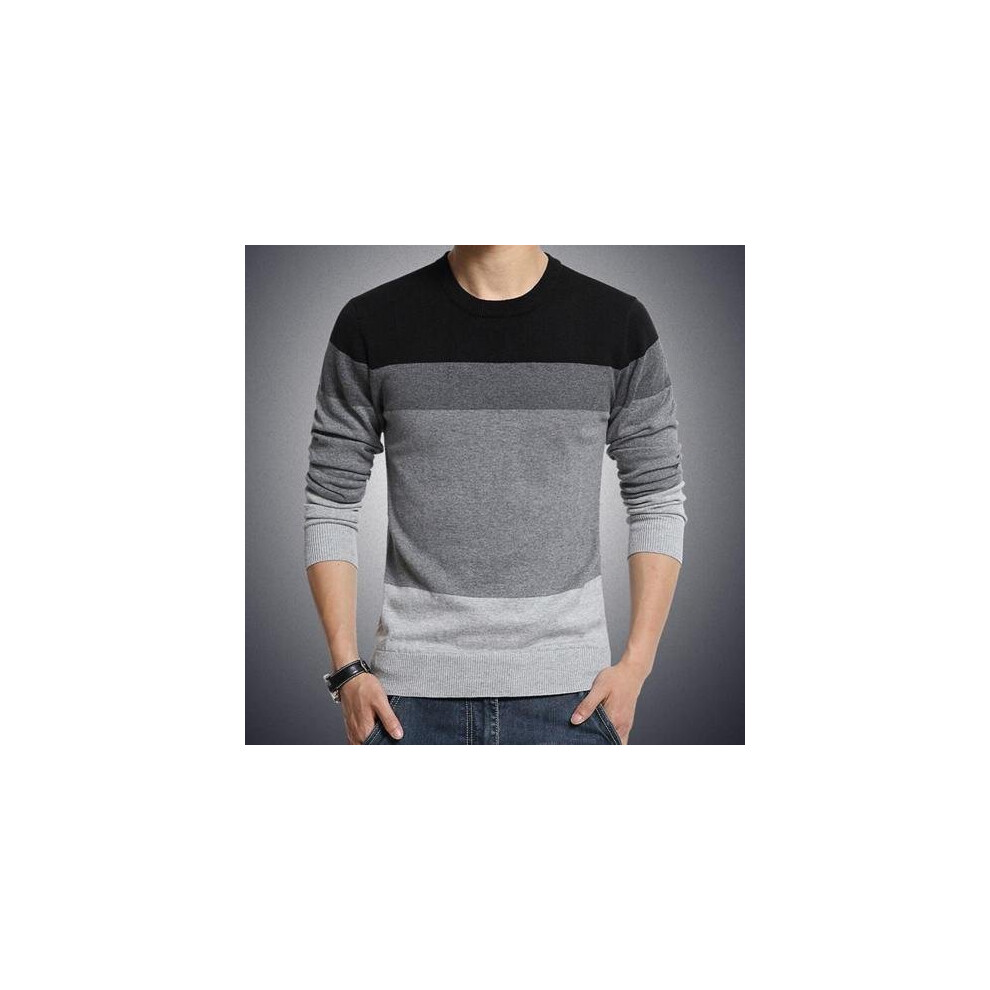 Men Pullovers Block O Neck Long Sleeve Slim- Fit Pullover Blouse Knitted Sweater