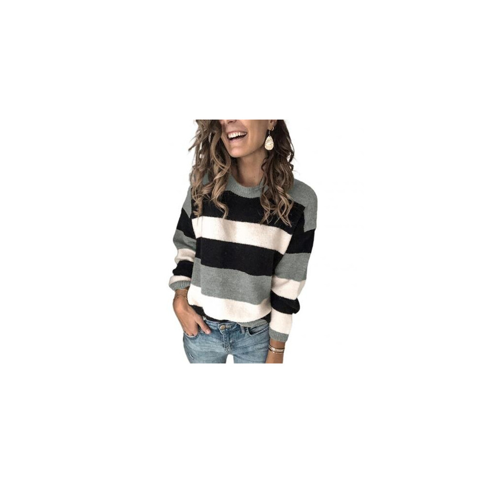 Women Striped Block O Neck Long Sleeve Sweater Loose Knit Pullover Women Clothing ??????? ??????? Pull Femme