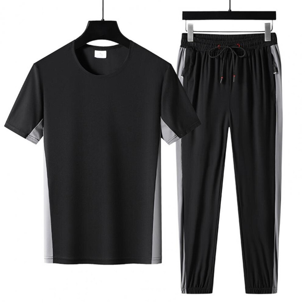 1 Set Summer Tracksuit Women Two Piece Sets Block O Neck Short Sleeve T-shirts Drawstring Pants Outfit Sets ropa hombre