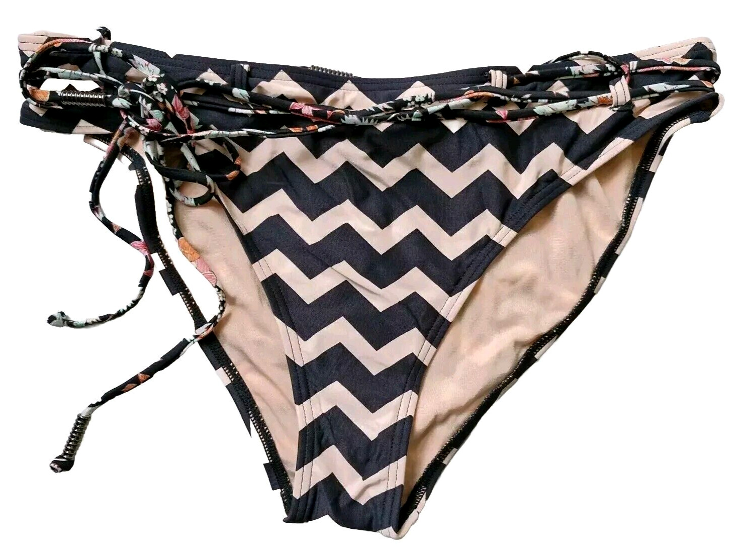 O'NEILL LADIES RUBY BIKINI BOTTOM SIZE 16 (XL) LACES BELT ZIGZAG PINK BLACK SWIM