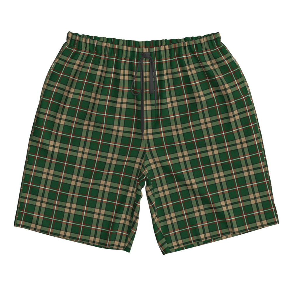 (O'Neill Tartan Tan And Green Irish Plaid_4542) Famgem Men's Beach Shorts Hawaiian Swim Trunks with Pockets Quick Dry Board Swimwear Bathing Graphic P