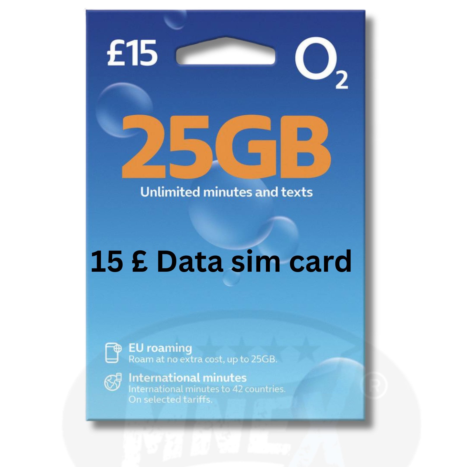 15£ 25GB Data Sim Card Pay As You Go O2 SIM Card Standard Micro & Nano 1st Class