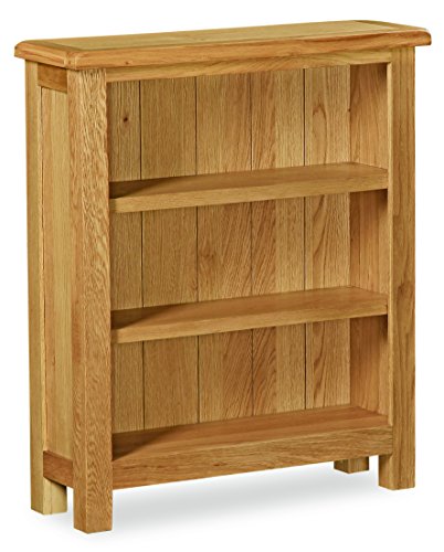 The Furniture Market Rustic Oak Low Bookcase – Compact Display Unit with Adjustable Shelves, Solid Oak Frame, Satin Finish, Perfect for Smaller Spaces - H 1000mm x W 900mm x D 350mm