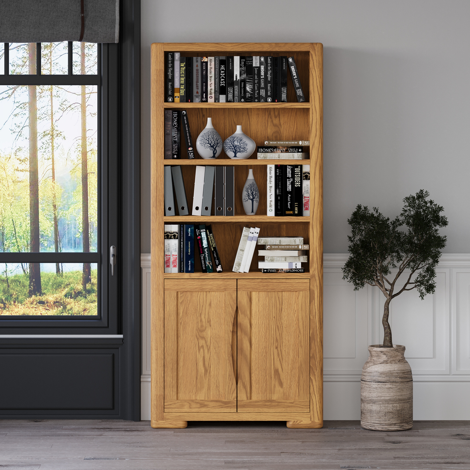Rosa Solid Oak Tall Bookcase with Cupboard