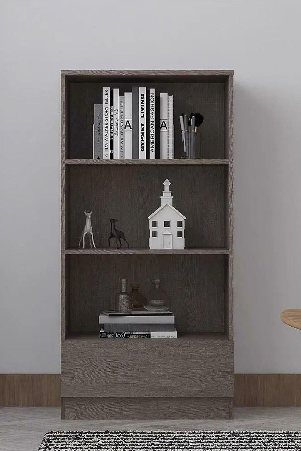 Turin, 3 shelf Bookcase Oak Finish Storage Unit