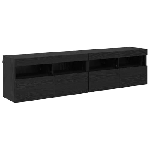 vidaXL TV Wall Cabinets Wall-mounted 2 pcs Black Oak 80 x 30 x 40 cm, Living Room, Modern Rectangular Media Cabinet, Durable Wall Storage, Entertainment Console, Space-Saving Furniture, LED Display