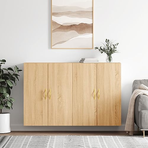 Teenpull Wall Mounted Storage Cabinets, 2 pcs Sonoma Oak, Durable Engineered Wood Credenza, 69.5x34x90 cm, Versatile Display & Organization for Living Room, Bedroom, Dining Room