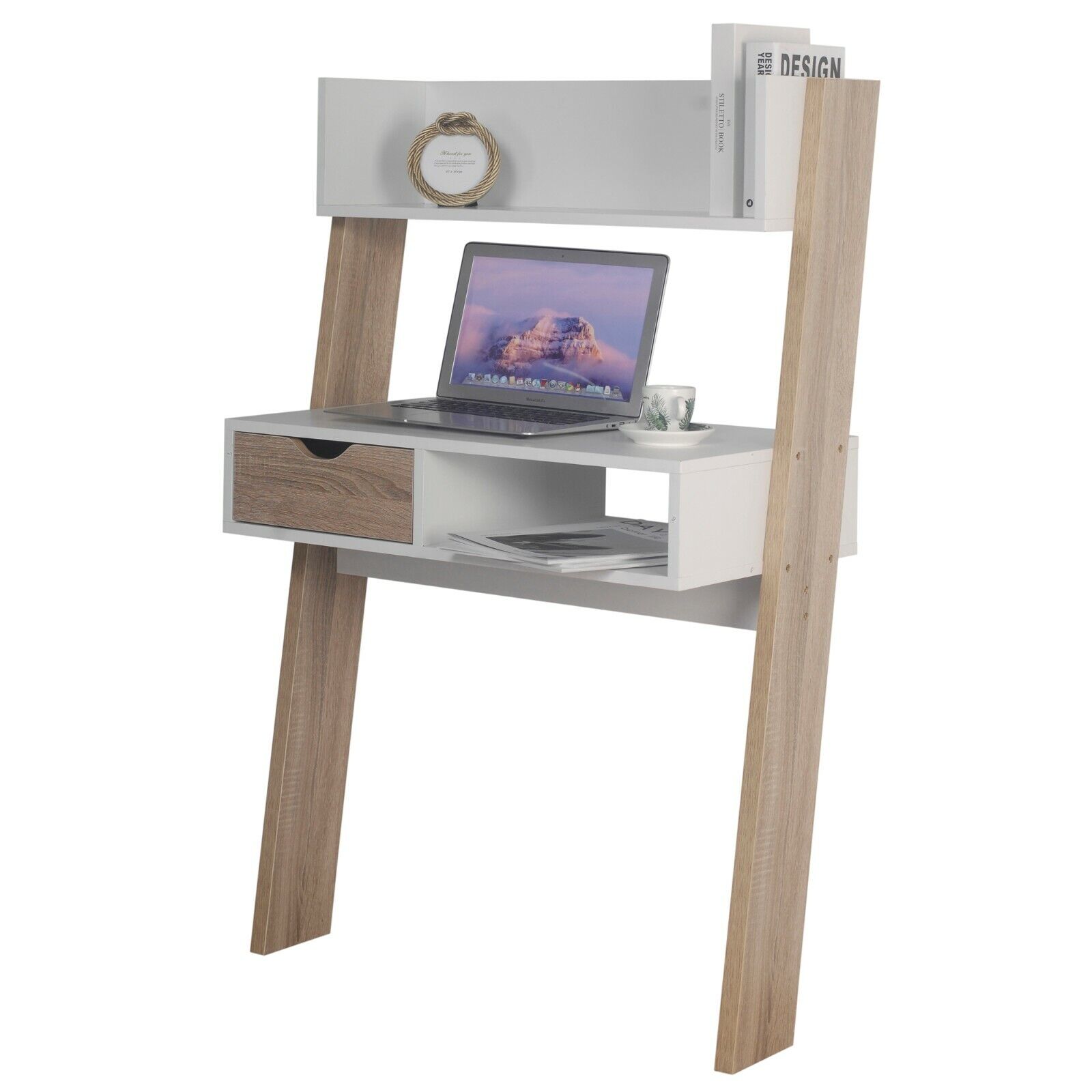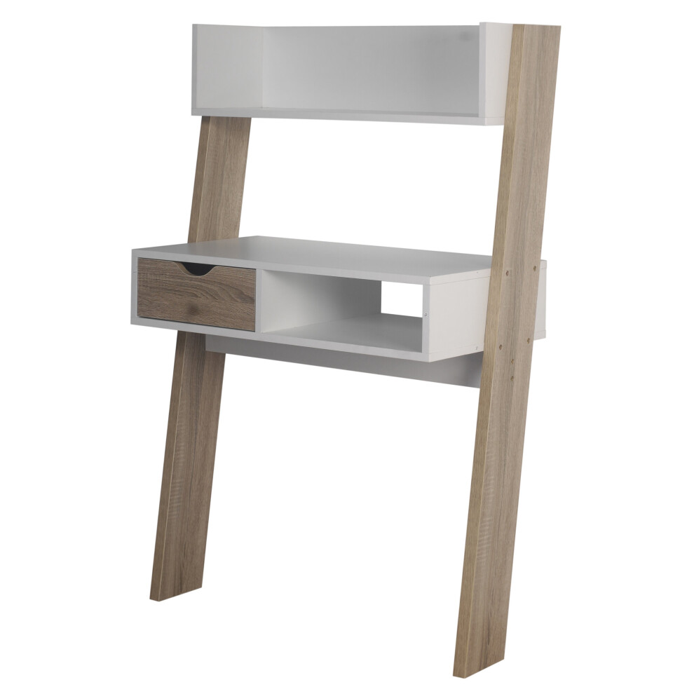 URBNLIVING Oak & White Ladder Desk 1 Drawer Shelf Wooden Bedroom Computer Table Work Office