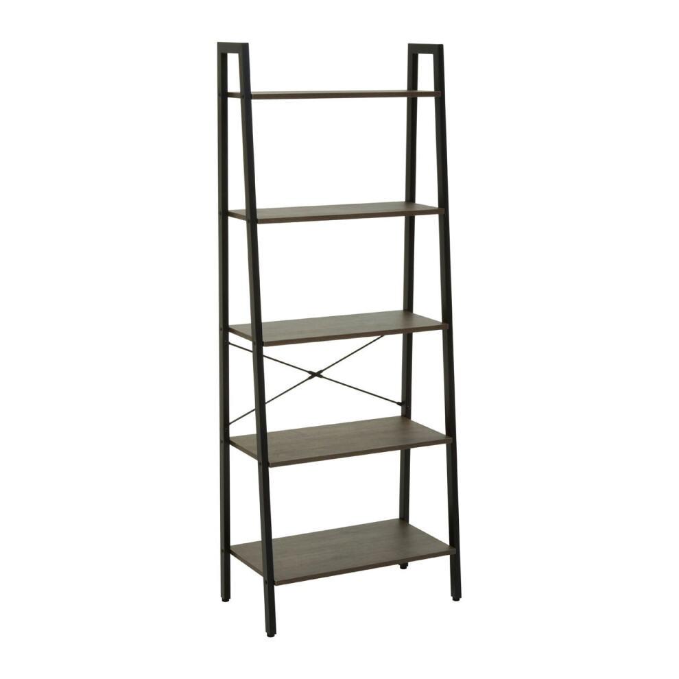 Functional Five Tier Dark Oak Veneer Ladder Shelf Unit, Stylish Industrial Narrow Shelf, Versatile Cupboard