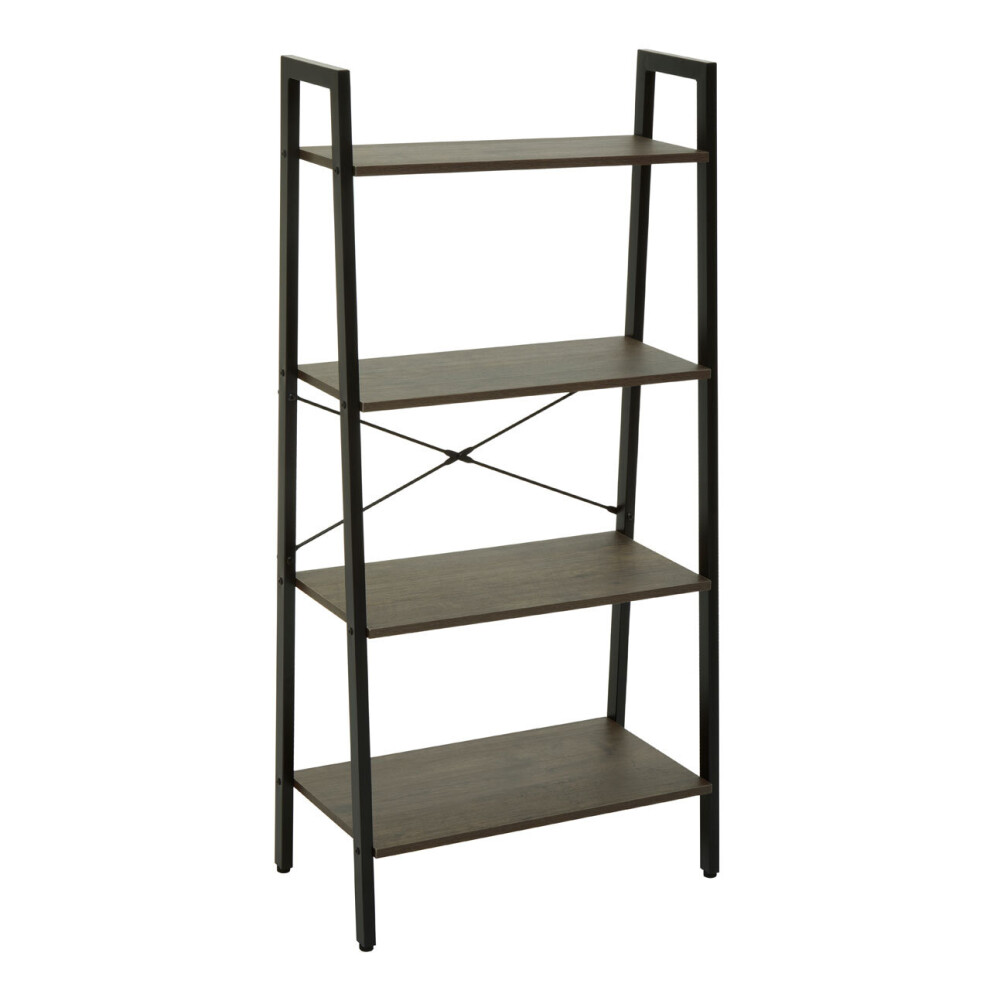Functional Four Tier Dark Oak Veneer Ladder Shelf Unit, Stylish Industrial Narrow Shelf, Versatile Cupboard