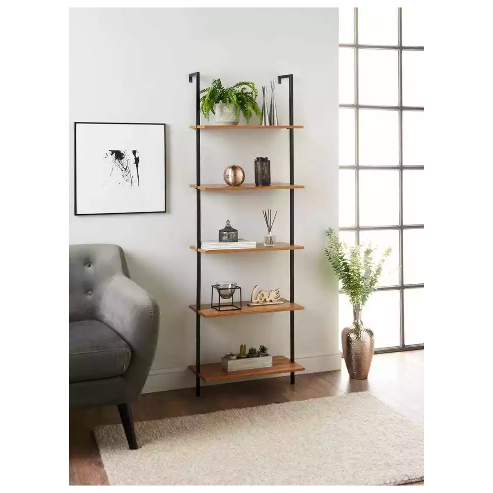 Riva Retro Ladder Bookcase Desk Shelving Shelf Unit 5 Tier Oak