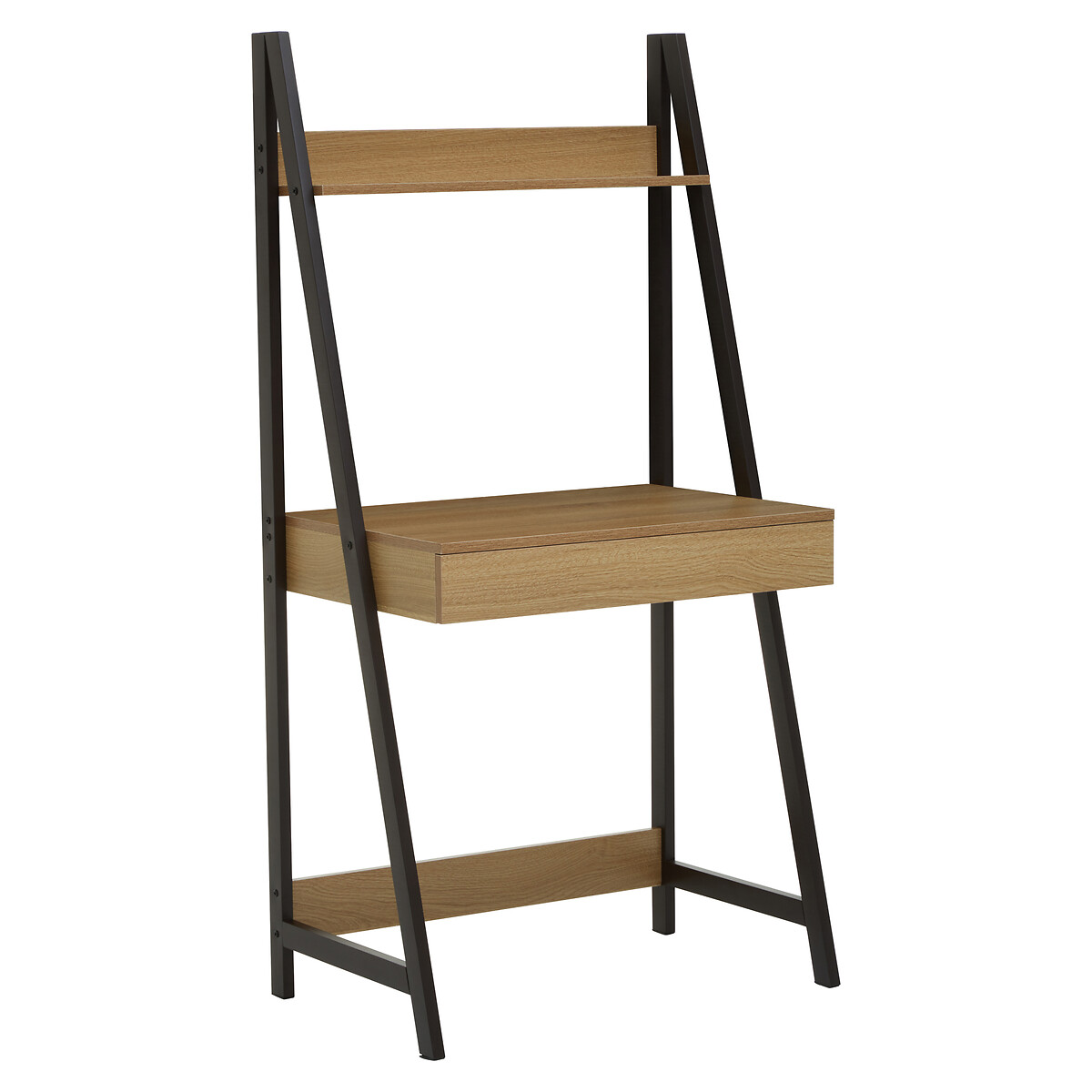 Natural Oak Effect Ladder Shelf Desk Unit with Frame