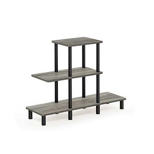 Furinno TURN-N-TUBE Storage Shelves, 3-Tier Ladder Book Shelf, Accent Display Shelf, Toolless Open Shelves, Round Tubes, for Organization and Storage, Living Room, Garage, Home Office, French Oak