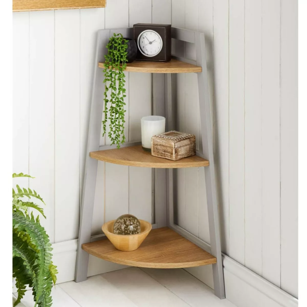 Corner Ladder Shelf Bookcase - Grey & Oak Plant Stand and Storage Rack