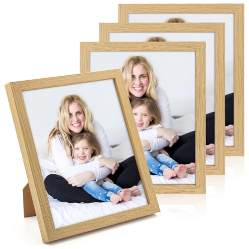 WenYa 8x10 Oak Photo Frames, 4 Pack 10x8 Picture Frames Wall and Desktop Horizontal Vertical 25.4x20.3cm Frames for Family Pictures Display (Oak, 8x10-4pack)