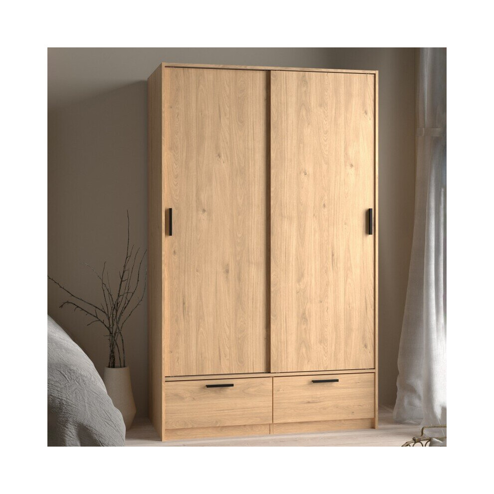 2 Door Combination Wardrobe Tall Big Wooden Wardrobe With 2 Big Drawers Bedroom Storage Units With Hanging Bar Clothes (Oak)