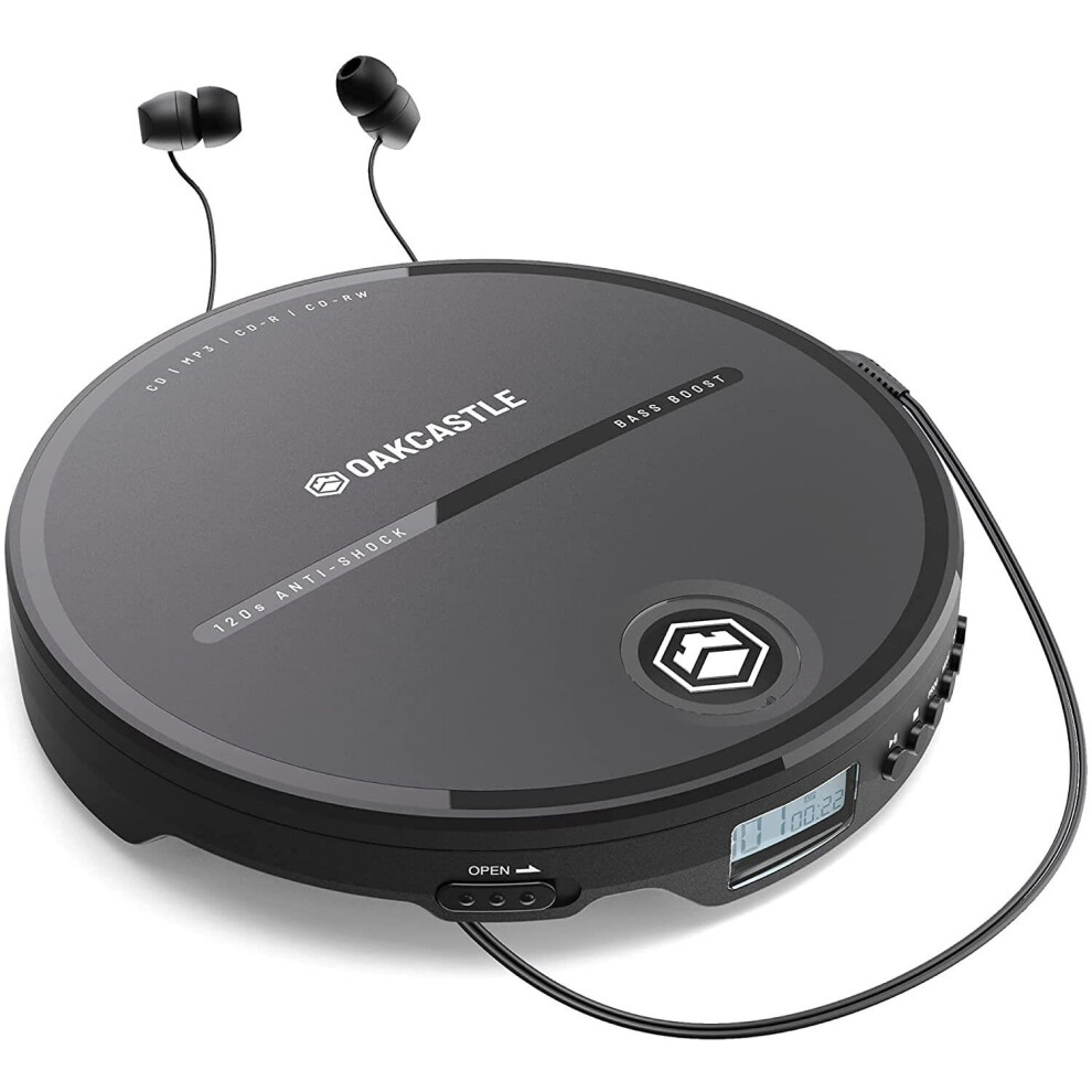 Oakcastle CD100 Rechargeable Bluetooth CD Player | 12hr Portable Playtime | In Car Compatible Personal CD Player | Headphones Included, AUX Output, A