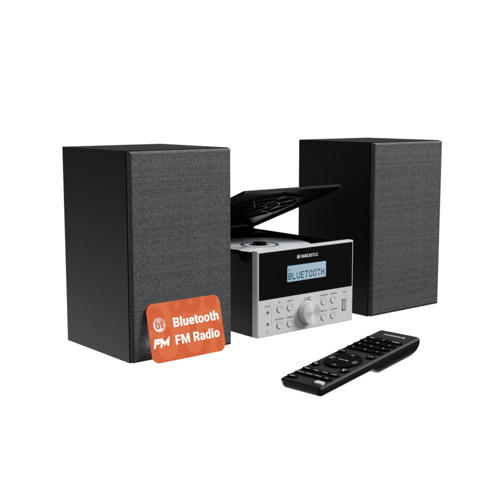 Bluetooth DAB+ Radio & CD Player | 40 Watt Mains Powered Hifi System for Home | Inbuilt Speakers, LED Display | Dual Alarm, 20 Presets & FM | USB, MP3, AUX | Remote Control Included | Oakcastle DAB400