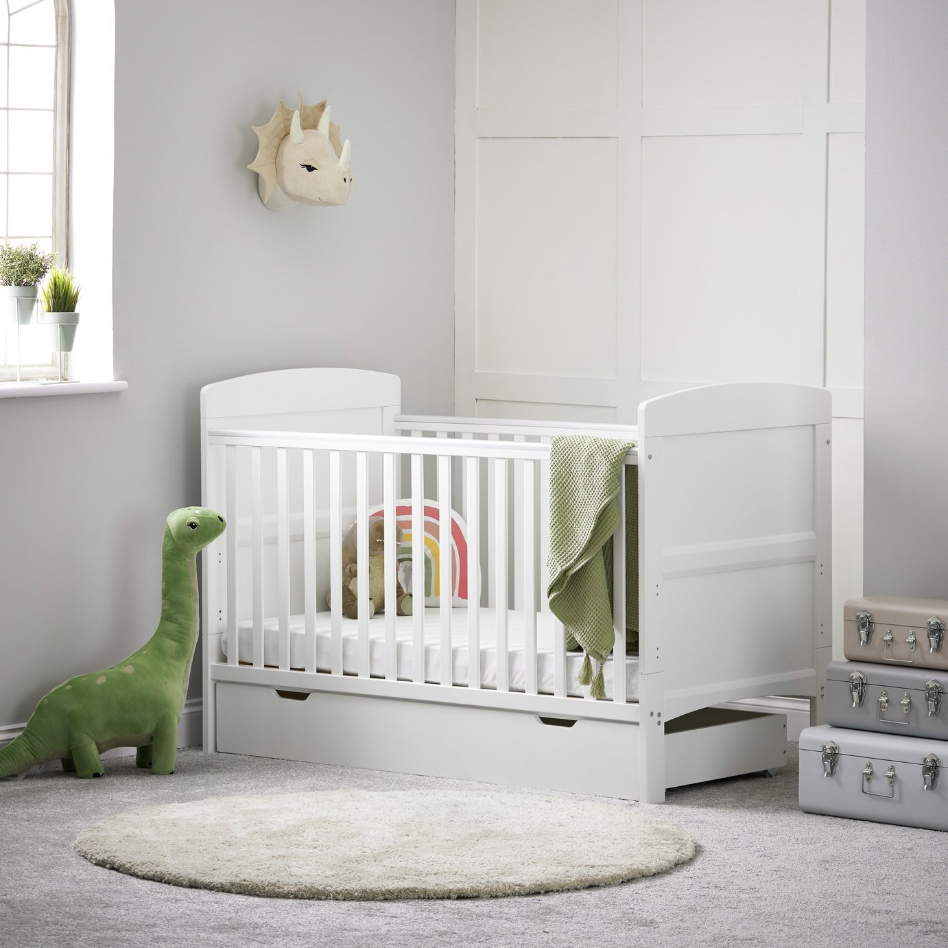 Obaby Grace Cot Bed, Cot Top Changer & Mattress - White