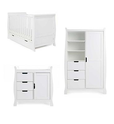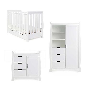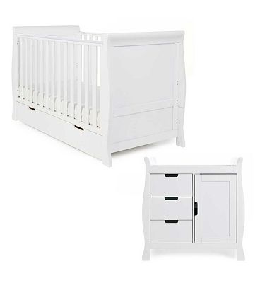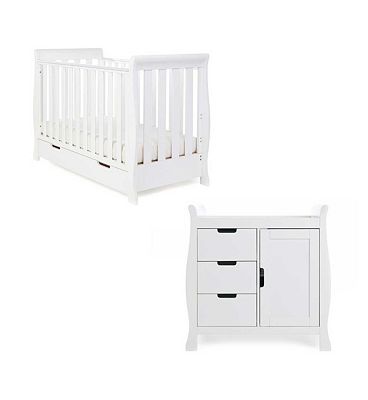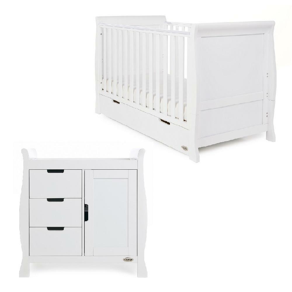 Obaby Stamford 2 Piece Room Set - White Classic Sleigh Cot Bed and Changing Unit