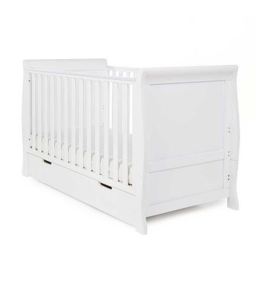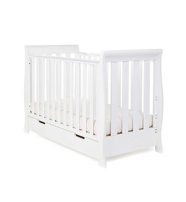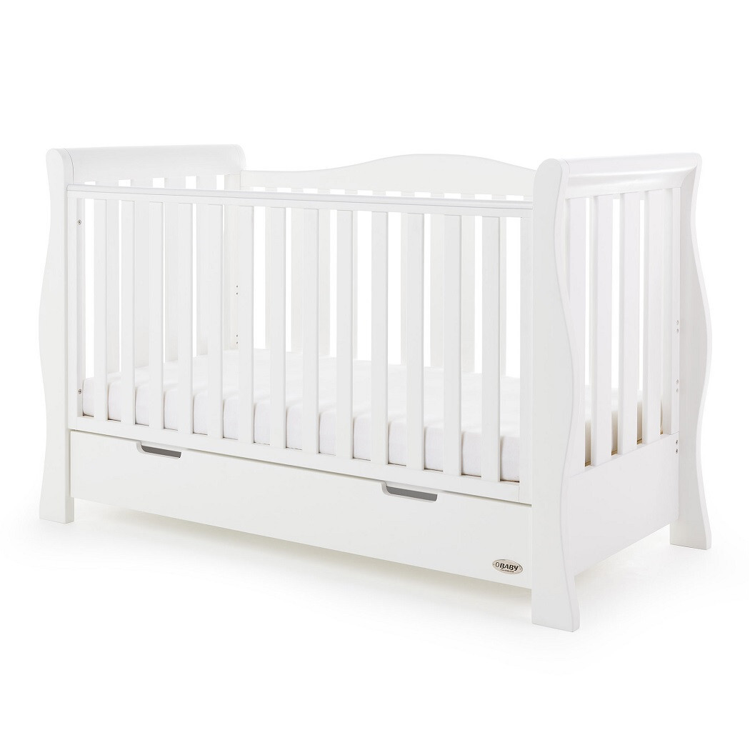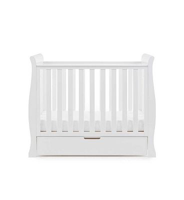 Obaby Stamford Luxe Cot Bed with Drawer - Sleigh Style - Adjustable Base - White