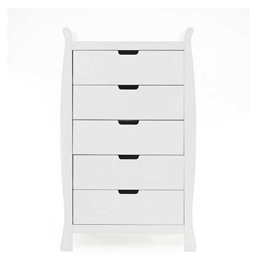 Obaby Stamford Sleigh Tall Chest of Drawers - Baby Nursery Furniture - White