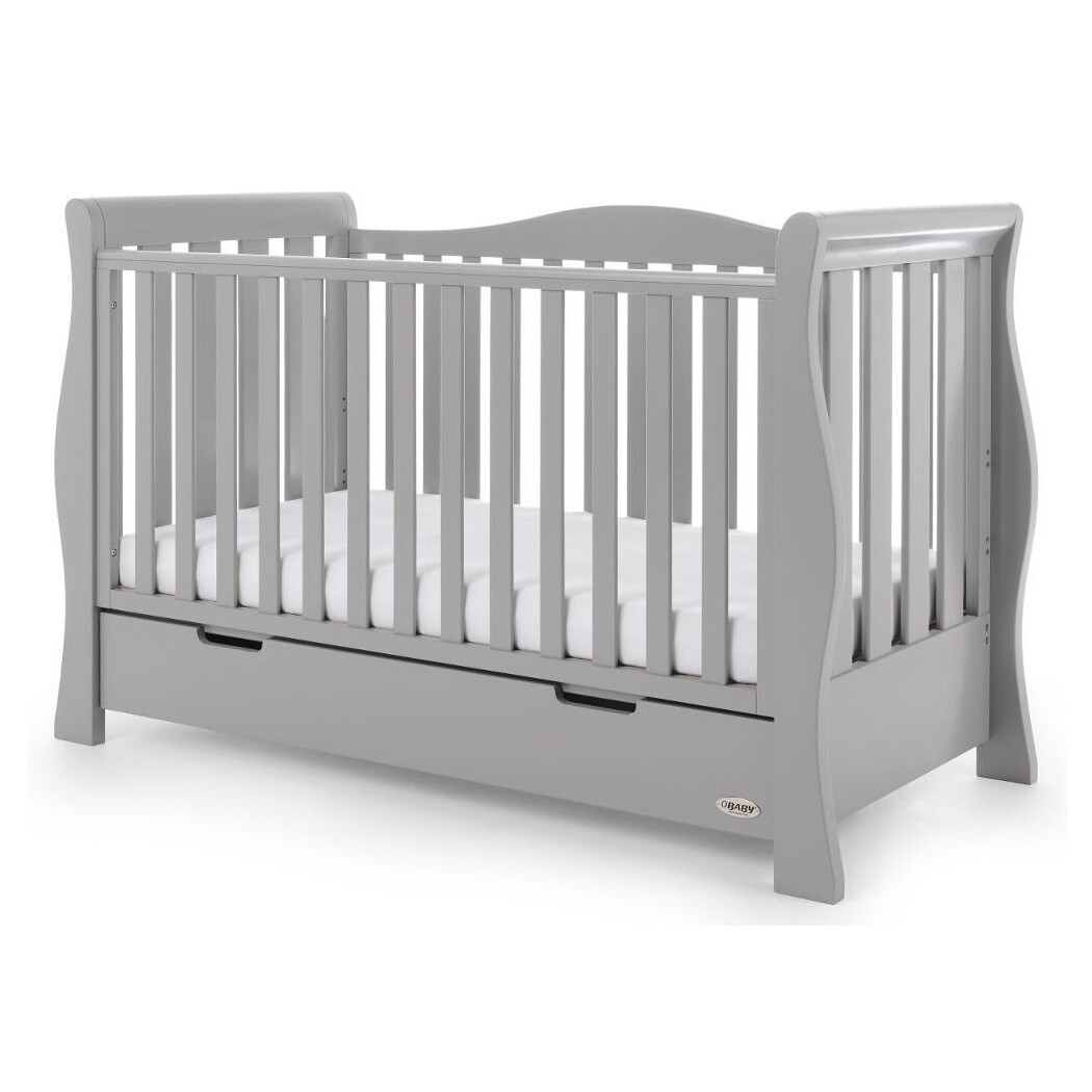 Obaby Stamford Luxe Cot Bed with Drawer - Sleigh - Adjustable Base - Warm Grey