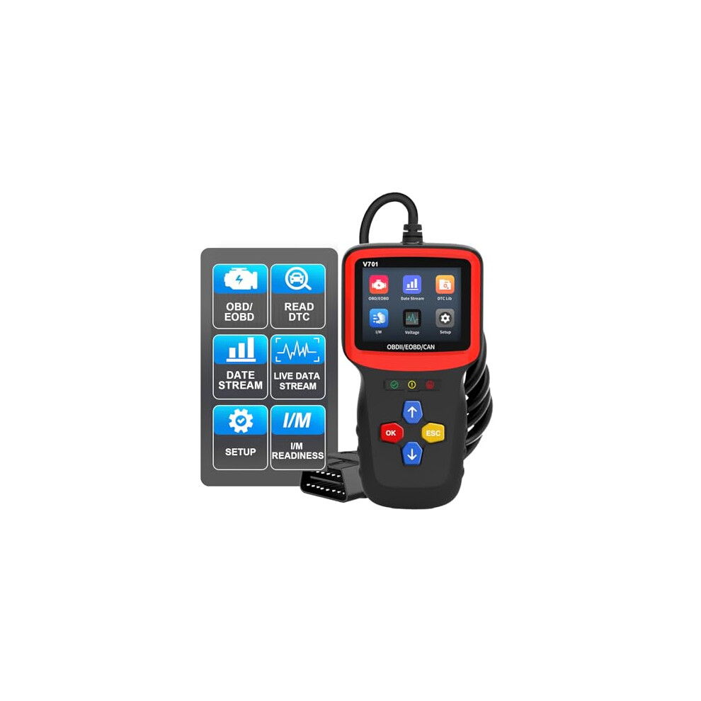 Car Engine Fault Code Reader OBD II Scanner w/ Live Data Reading & I M Monitor Readiness Universal OBD2 Protocol Compatibility Check Engine Light