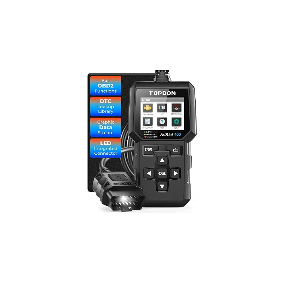 OBD2 Code Reader TOPDON AL400 OBD Scanner, Car Fault Diagnostic Tool with 10 OBD Functions- Check Engine Light/Smog Emission Test/O2 Sensor Test/EVAP,