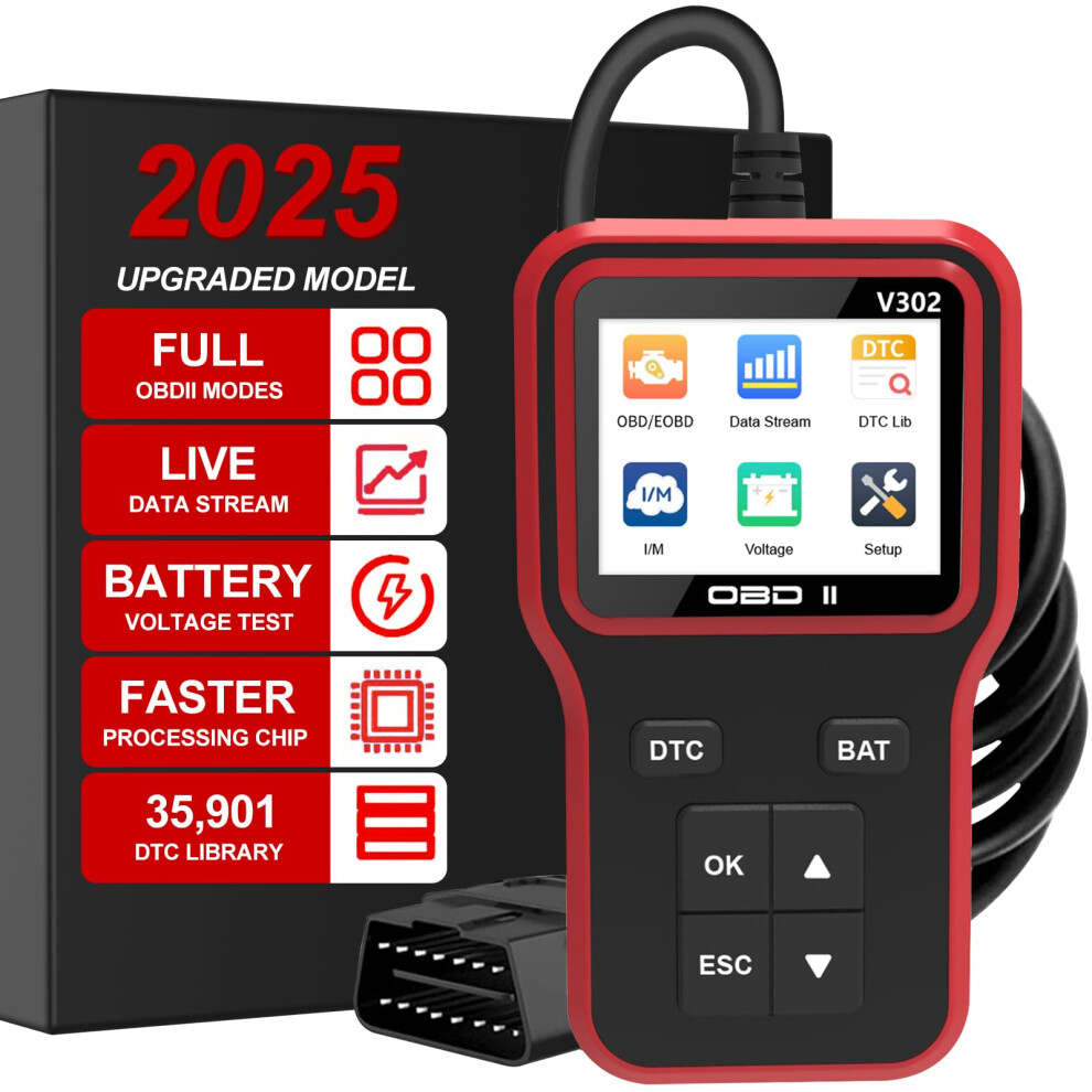 OBD2 Scanner Car Engine Fault Code Reader Wired ODB2 OBD Diagnostic Scan Tool for Check Engine Light, View Freeze Frame, Live Data, EVAP System Test V302 for 9 OBDII Protocol Vehicles Since 1996