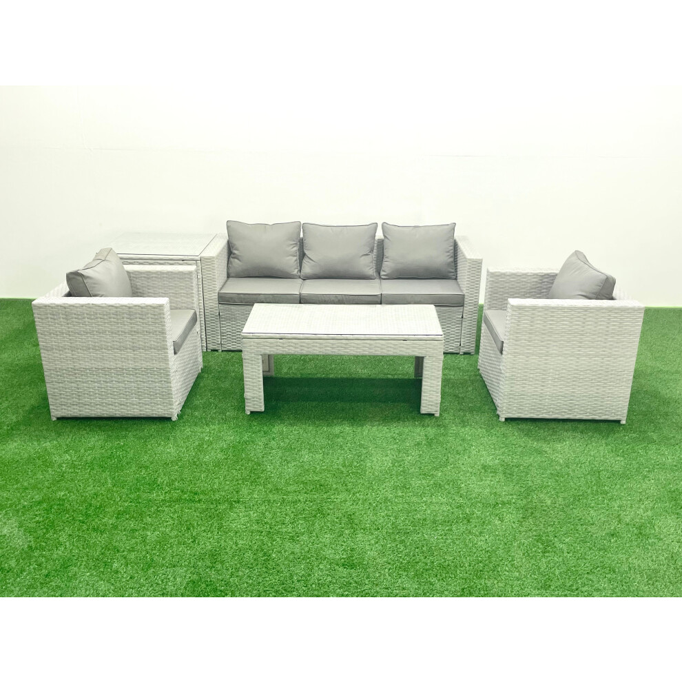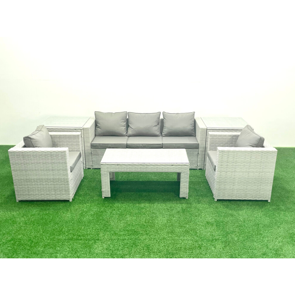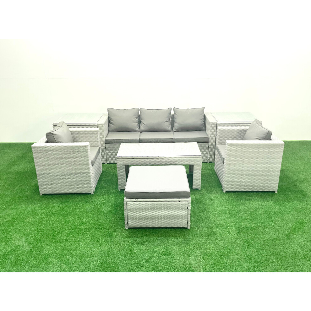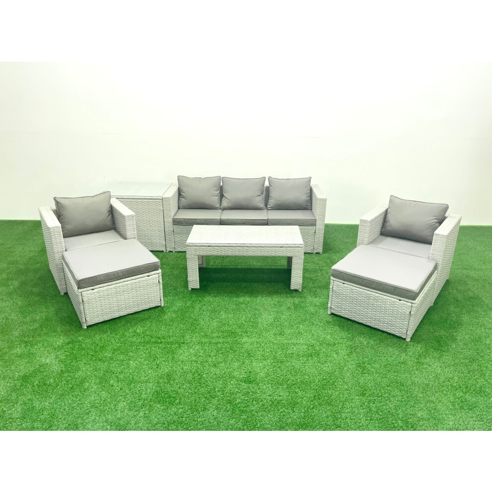 Fimous Rattan Garden Furniture Set 7 Seater Outdoor Garden Sofa 2 Chairs Oblong Coffee Table Set with 2 Stools Side Table Light Grey Mixed